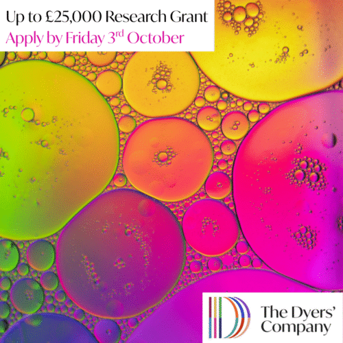 We invite applications for the Dyers’ Company Research Grant. The deadline for applications is 3rd October 2025.